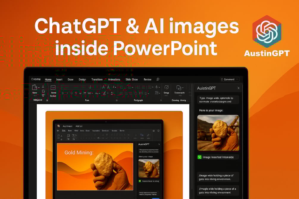 AustinGPT is a PowerPoint add-in that brings ChatGPT and AI image generation directly into your slides.